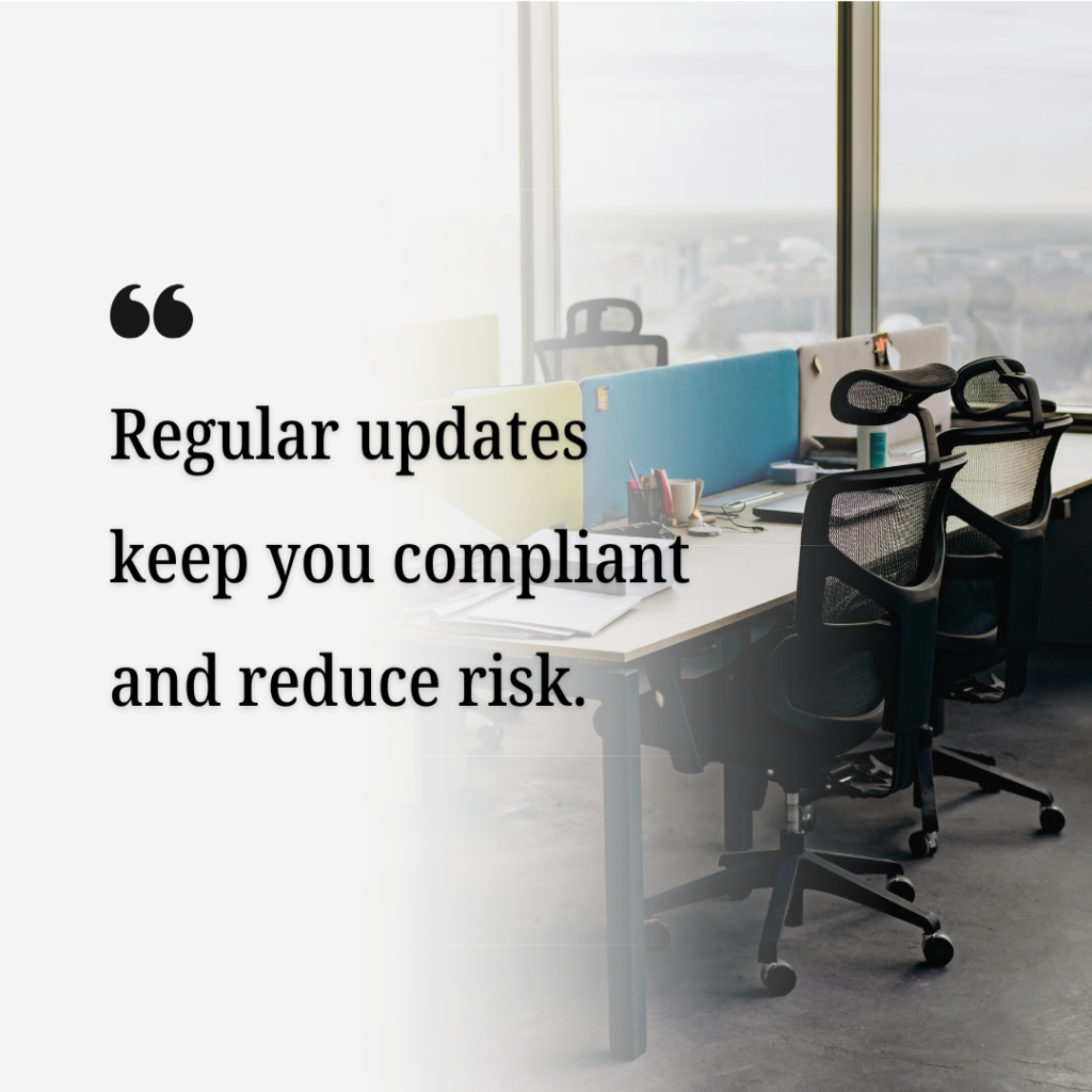 • Annual policy reviews help maintain compliance as laws and operations evolve